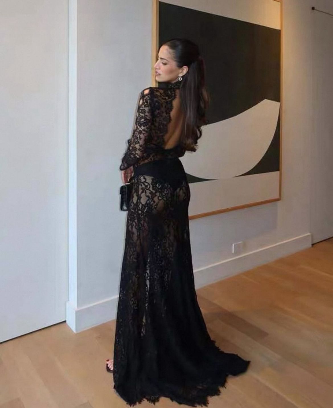 Long-Sleeve Dress with Adjustable Shoulder Straps