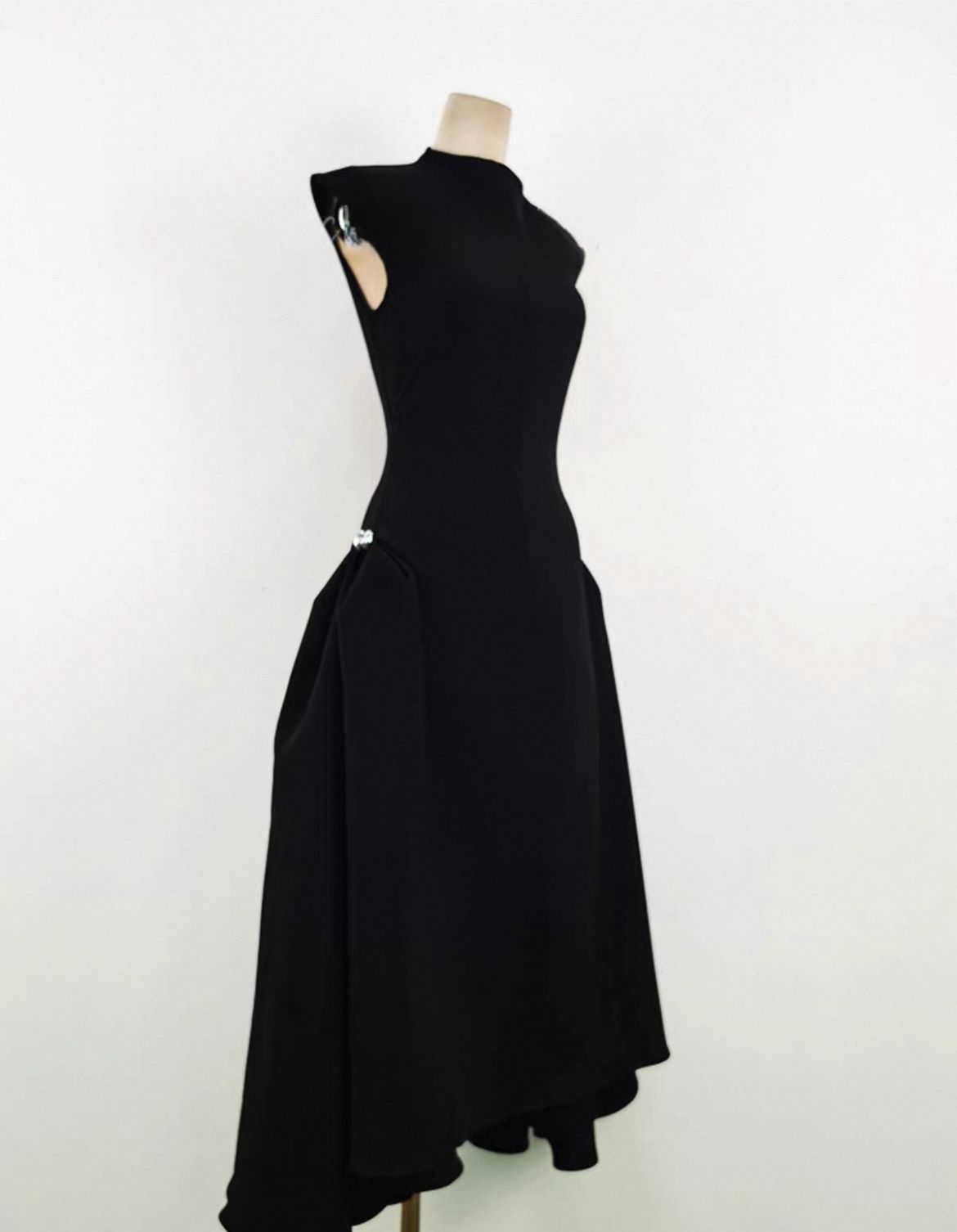 Black Draped Shoulder Pleat